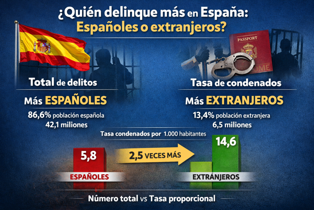 Madrid — El debate sobre si en España delinquen más los españoles o los extranjeros suele aparecer cargado de tensión política, pero los datos oficiales muestran que la respuesta depende de qué se compare exactamente: el número total de delitos o la tasa proporcional sobre la población. En términos absolutos, la mayoría de los delitos […]